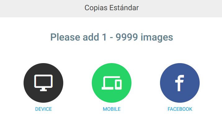 Al abrir el producto que queremos desde nuestra tienda se nos presentará el selector de imágenes, dándonos la posibilidad de subirlas desde distintos orígenes.