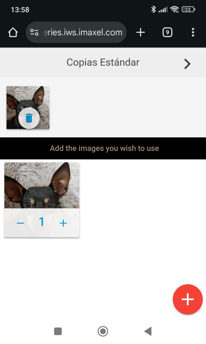 Las fotos que se seleccionan en el teléfono se añaden automáticamente a la pantalla del ordenador. Cuando estén añadidas todas las que se desean se puede seguir con la personalización desde el ordenador.