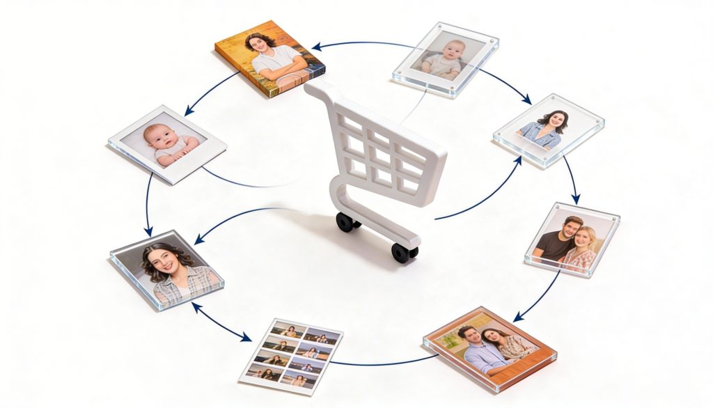 Al ofrecer productos ya montados con las propias imágenes del cliente, se ofrece una forma rápida y fluida de aumentar el ticket medio, sin fricciones ni dudas, con las fotos del cliente