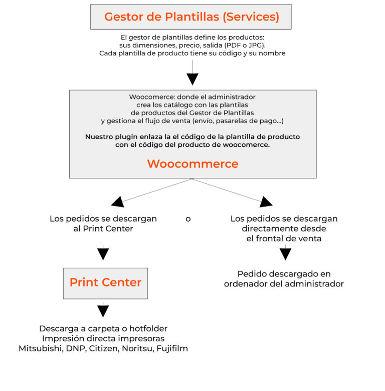 Descarga de pedidos: Disponible a través del WP-Admin o bien mediante nuestro software Print Center, incluido con el alta.