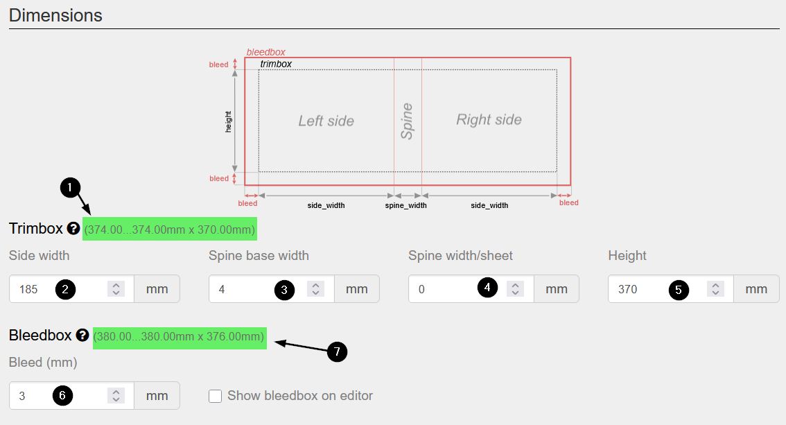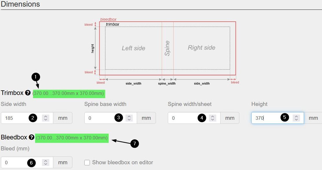 Alto (370mm) - Ancho de la contraportada y ancho de la portada. El valor introducido aplicará a ambas partes.