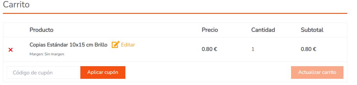 Si le damos al botón Añadir al carrito lo sumará a la compra actual: