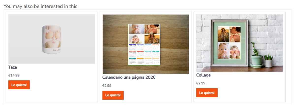 En este momento, Printspot analiza las imágenes del cliente y prepara instantáneamente productos complementarios ya personalizados con las fotos del usuario:
