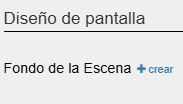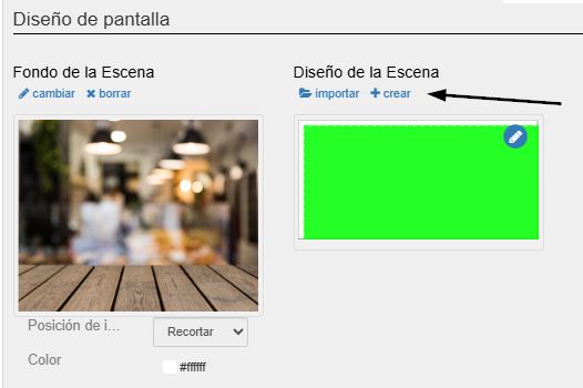 Una vez subido haremos clic en el botón crear del diseño de la escena y subiremos el png transparente que hemos creado: