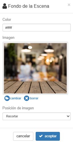 Nos da la posibilidad de modificar el color de fondo o bien subir una imagen: