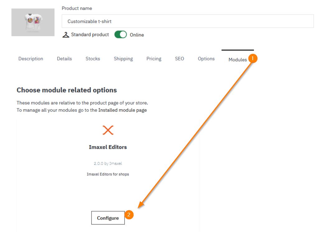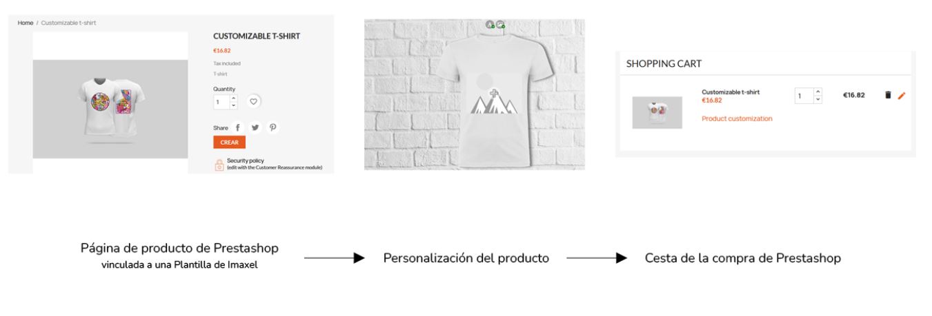 One of these options is the linking to the Imaxel template. This is how the user can access and customize their template, and once the customization is finished, PrestaShop handles the rest of the purchasing process.
