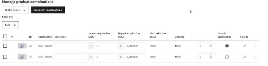You also have the possibility to assign PrestaShop product variations to either Imaxel template variations or to templates themselves.