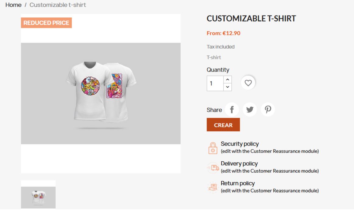 Once the customer has finished personalizing the product, they access the PrestaShop shopping cart again: