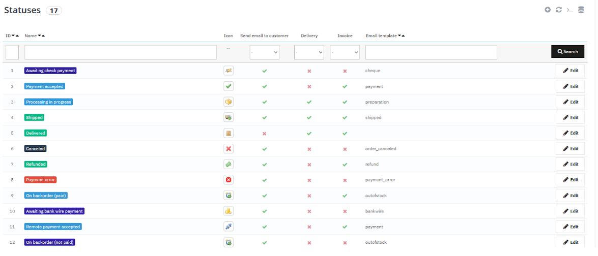 All order statuses marked with this option will send the order to Imaxel systems to generate the associated order files. If you want more information about order statuses, you can consult the official PrestaShop documentation.