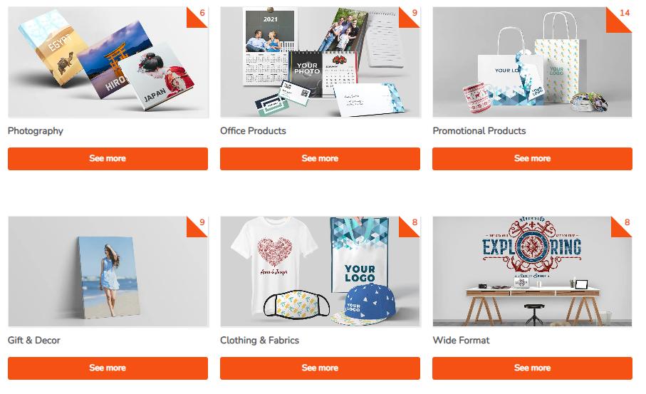 Here we can see the presentation of various products in a Printspot store: