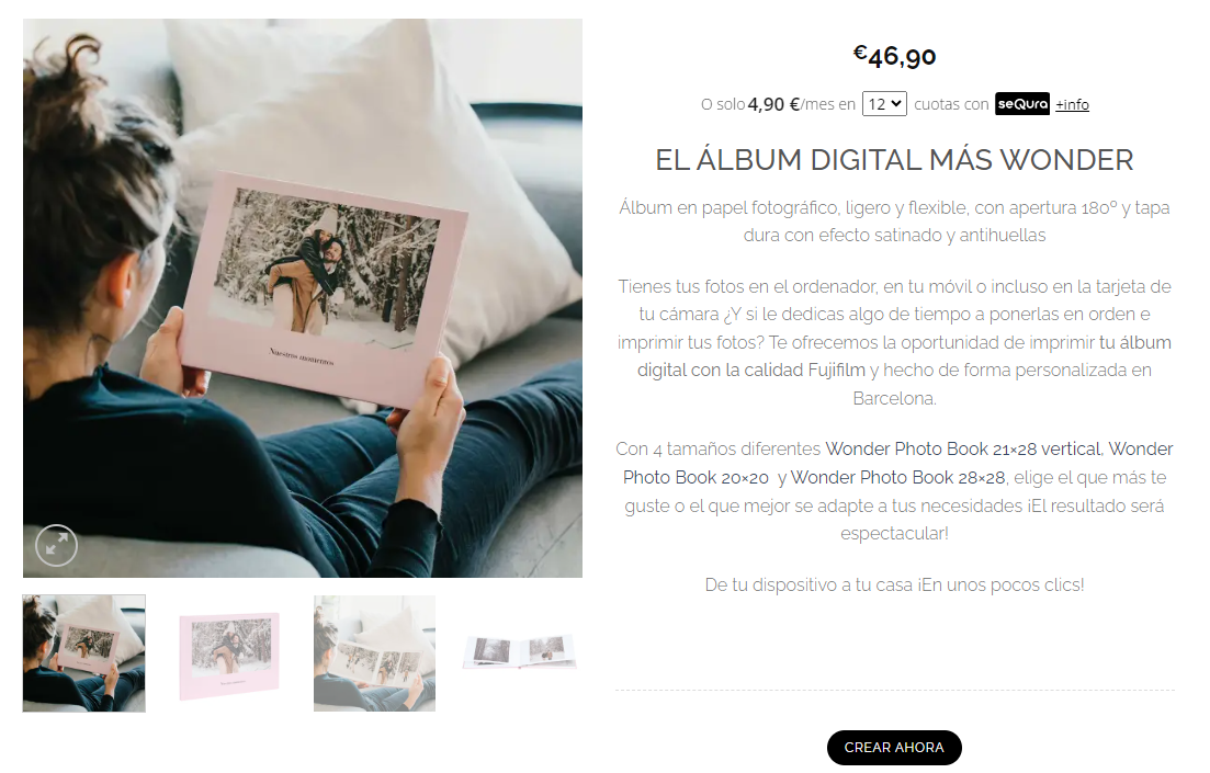 In the example, we talk about photo sizes, but the concept of variation applies to any product characteristic we can imagine. Different types of frames for canvases, different thicknesses of a methacrylate support, different collages with different numbers of photos…