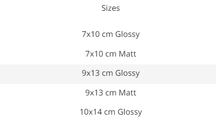 These options, in turn, will have a series of characteristics that make them unique among themselves: The printing size of a 10×7 photo is not the same as the printing size of a 10×15 photo.