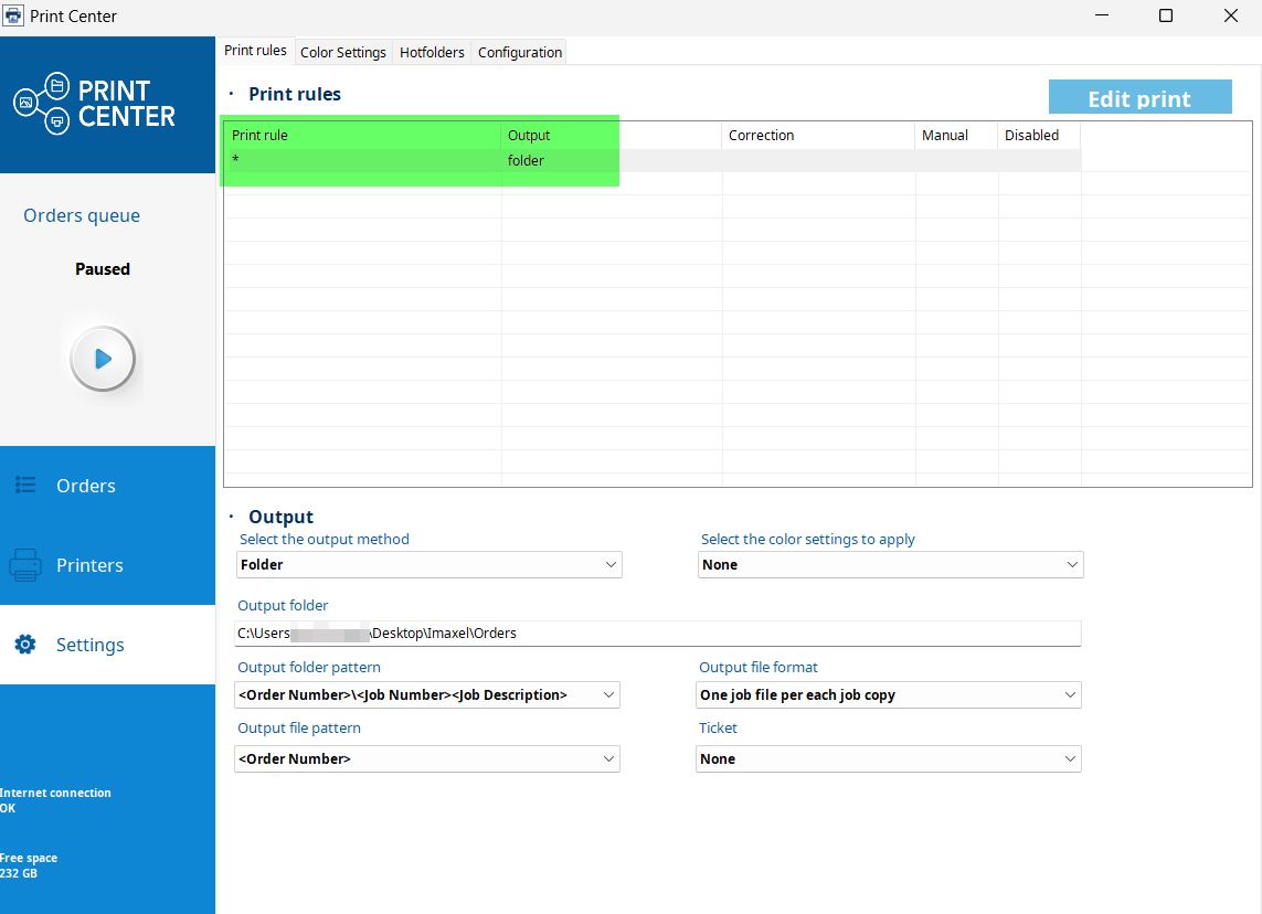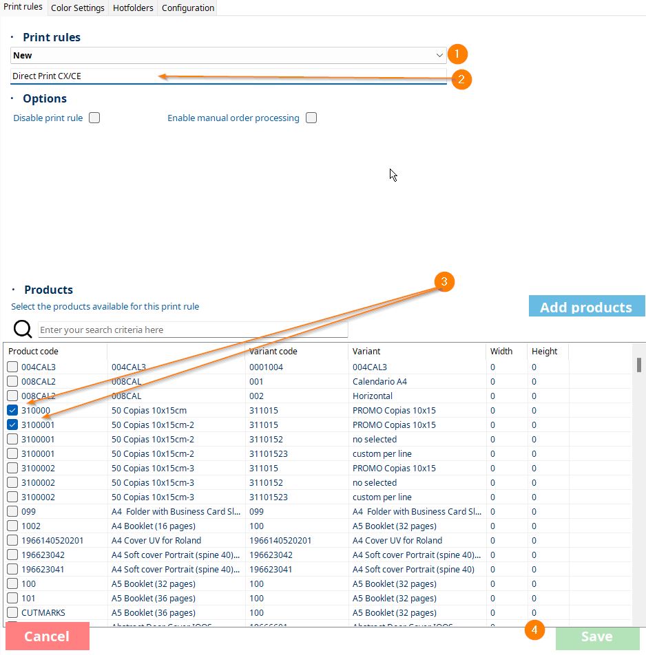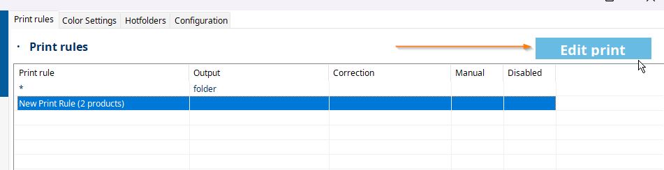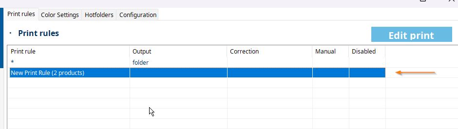 - Select an existing print rule or create a new one
