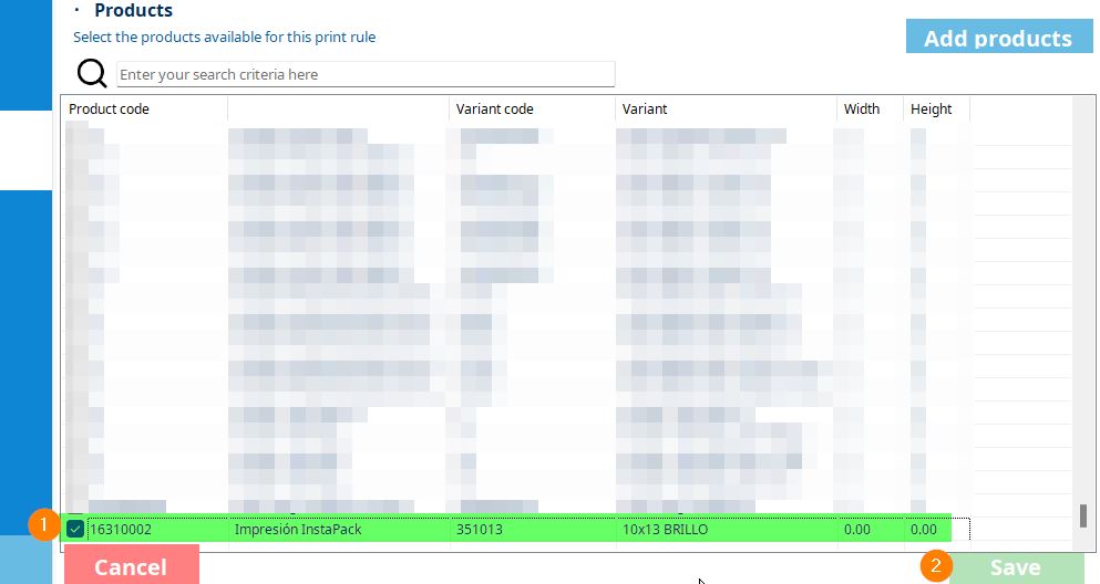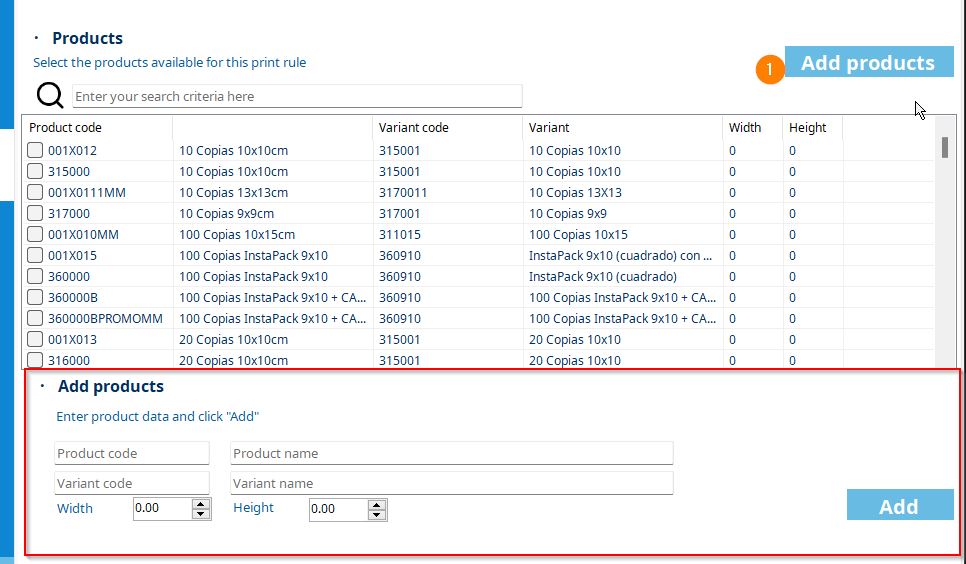 To manually add a product to the print rule, follow these steps:
