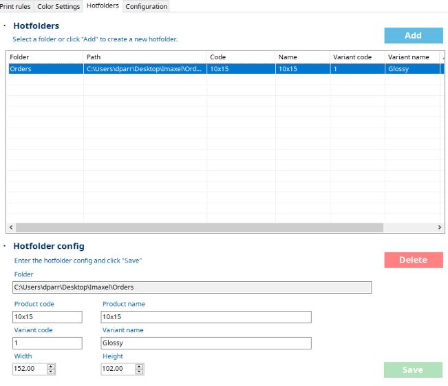 In this way, orders containing 10×15 size photos will always be stored in that folder.