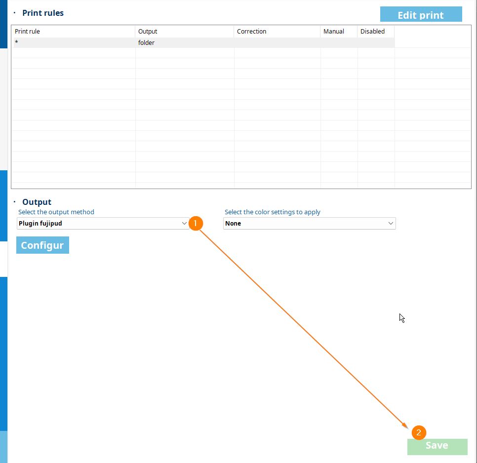 In the mentioned example, we could send the copies to one of the printers for which we have a connector, for example, a Fujifilm DX – DE, so they would print directly, and on the other hand, we could store the Canvas files in a folder, as they require another type of processing.