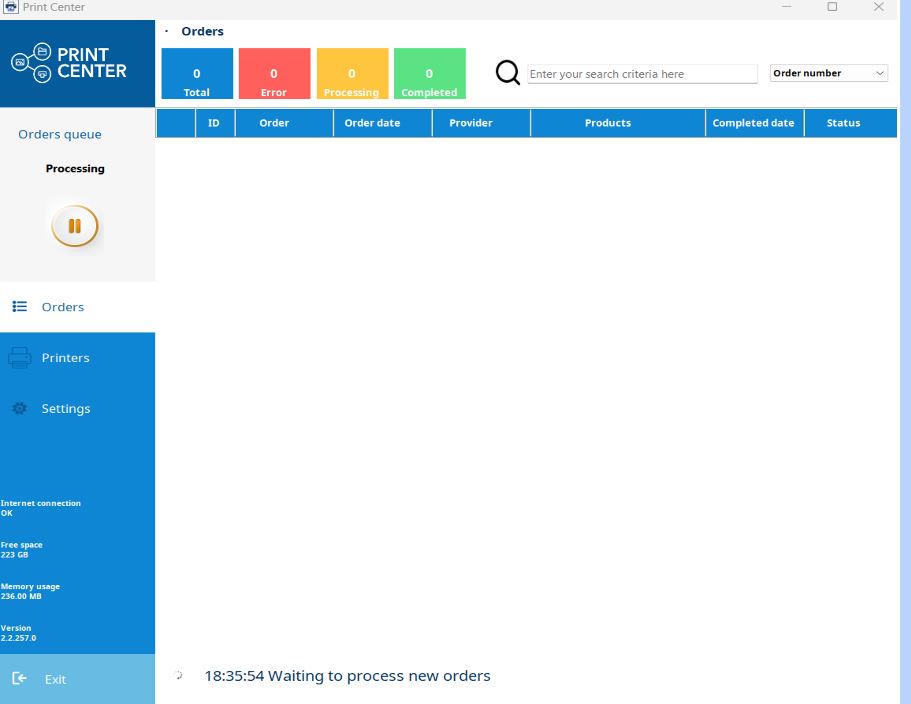 Thanks to the Print Center, we can operate orders from different origins, such as our Printspot sales front, a website with a CMS and our integration plugin, or offline products (orders managed on the same machine where the operator is, without needing an internet connection, such as in a Kiosk, for example).