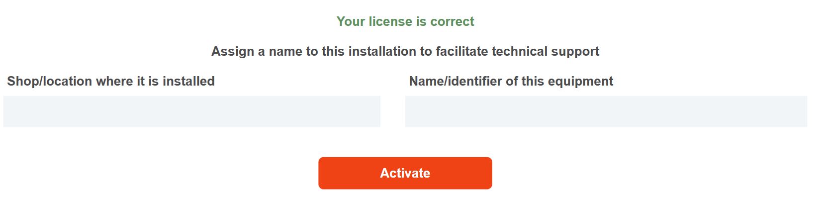 Once it is installed, the license number will be required and the Print Center will be configured according to your requirements, and a screen will appear to introduce data that identifies the equipment where it is installed: